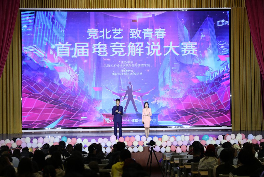 为提升大学生专业素养与艺术创新能力,展现学子青春活力与风采,12月19日晚,动画与传媒学院首届“竞北艺·致青春”电竞解说大赛在西校区大礼堂举行。学校特聘教授王玥、王刚、高亮,动画与传媒学院院长孙永辉、副院长杨红夷等学院领导应邀出席比赛现场。北海市融媒体中心广播电视节目主持人张磊,动画与传媒学院专业教师李剑阁、王荆宇萱担任此次大赛评委。