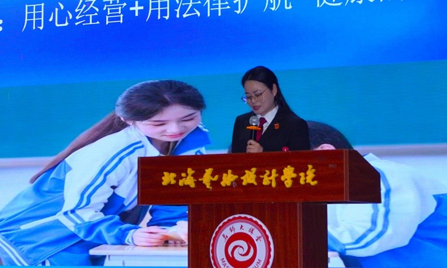 讲座第二板块聚焦法治教育,由北海市中级人民法院执行局执行一庭副庭长、一级法官叶雪玉以“以法为界,以爱为帆——构建健康亲密关系”为主题展开授课。叶雪玉法官结合真实司法案例与法律条文,为学生深入剖析恋爱中的责任边界、潜在法律风险与自我保护方法。