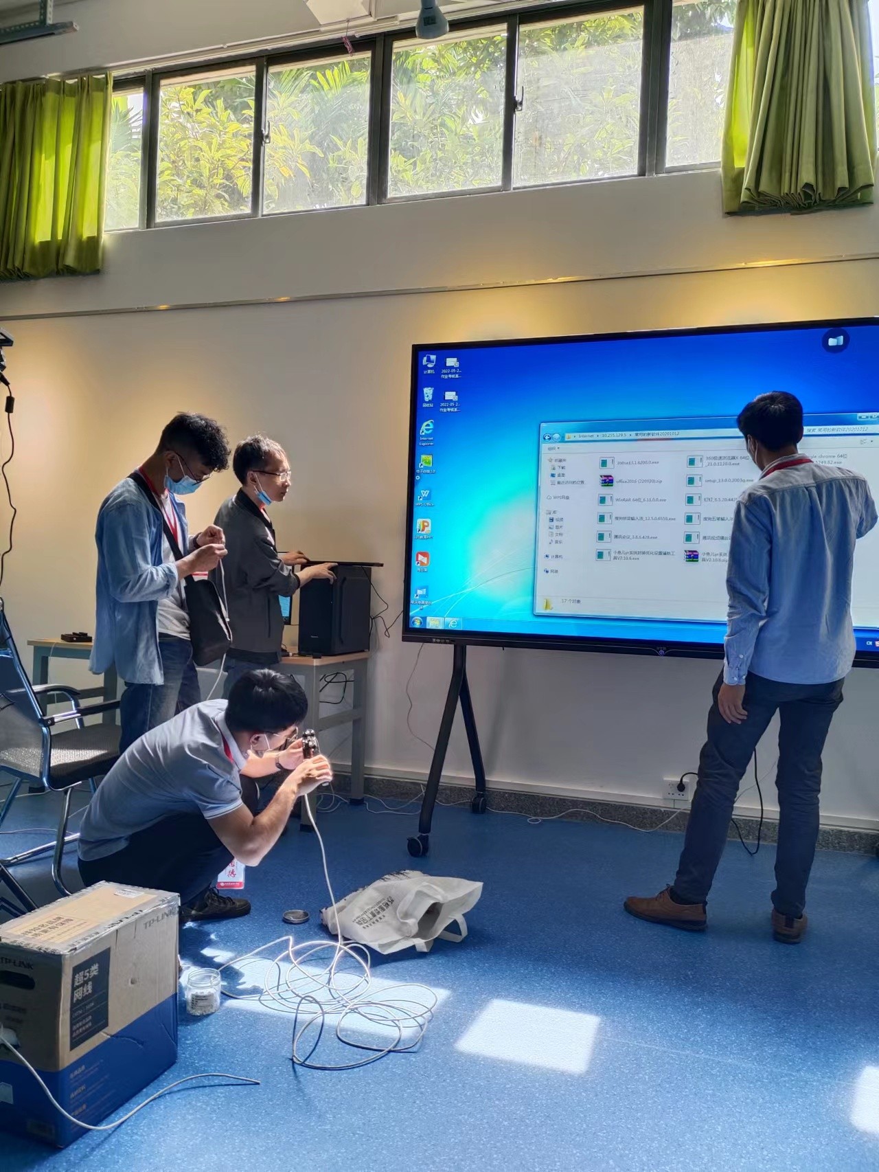 学校图书馆负一楼的15个展厅需要接入网络,设备与信息处联合网络供应商联通公司,现场排查安放网络设备,布线,保障展厅正常投入使用。